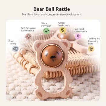 Baby Wooden Bear Rattle Teether Toy – BPA-Free Music & Soothing Gift for Newborns
