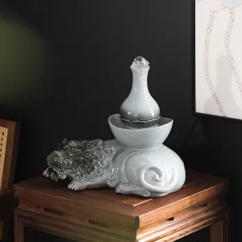 Blue Ceramic Elephant Water Fountain with Flowing Gourd